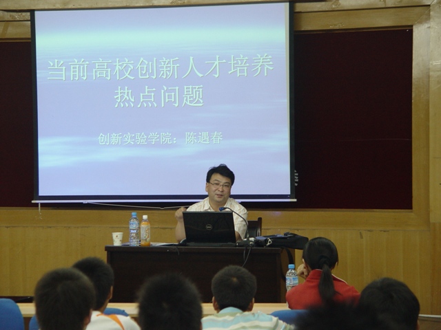 6月2日晚,由校团委主办、创新实验学院团工委承办的“院长讲坛”第十五讲——“当前高校创新人才培养热点问题”主题报告会在北校区七号楼二层报告厅举行。创新实验学院常务副院长、党总支书记陈遇春教授应邀为我校近200名学生做了报告,受到同学们的热烈欢迎。