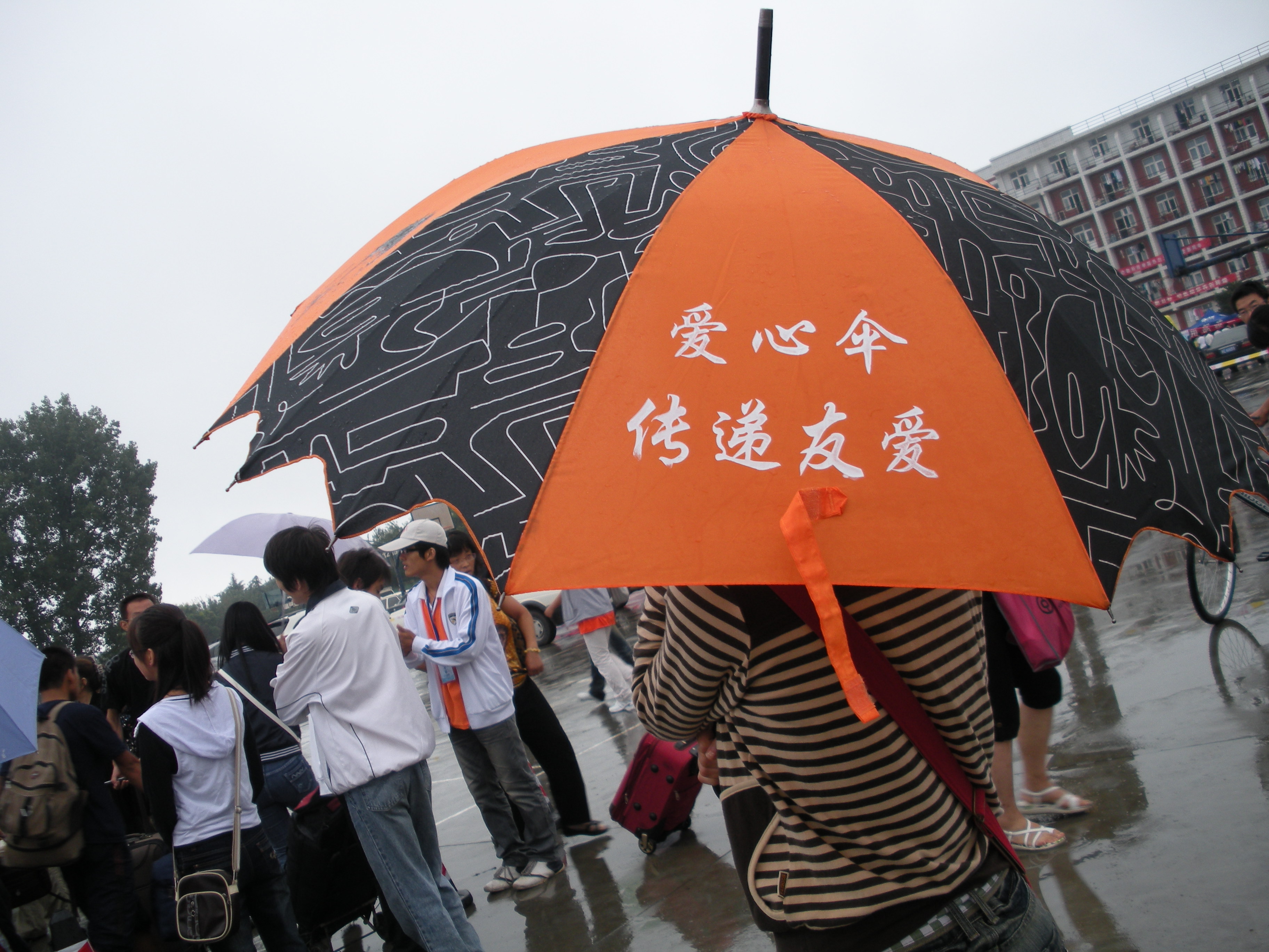 小小的爱心伞,醒目的橙黄色,热情的走在校园里,传递给一个又一个的同学。不仅为新生遮风挡雨,还为他们传递了缕缕温情。它们在新生与老生,家长与学校之间搭建起一座座友谊的桥梁。我们的爱心就像一把把的小伞,晴天收起,雨天豁然打开。有我们农林科大学生的热情和周到,相信再大的雨天我们也不用害怕。