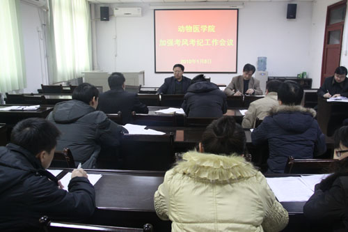 二是召开全体学生干部及部分学生代表大会,进行了加强考风考纪动员。元月6日,学院召开考风考纪动员大会。动物医学院全体院领导出席了会议。学院部分班主任代表、全体辅导员及全体学生干部、部分学生代表共200多人参加了动员大会。赵献军书记在会上就考风考纪问题进行了广泛动员。