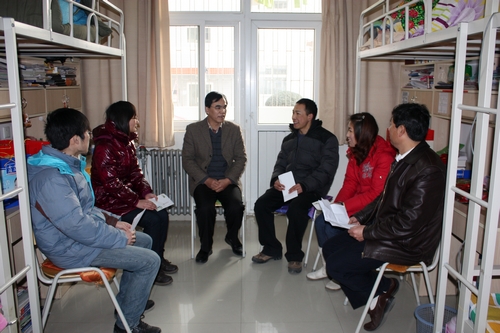 党委副书记张振华仔细查看了同学们的宿舍环境,叮嘱大家一定要注意安全,有困难随时可以和学院的领导、老师联系,最后他还提醒同学们春节一定要给家人打电话报平安,并送去节日的问候。