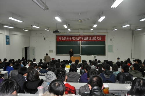 11月7日下午,生命学院在N8T07教室召开学院2011年优良学风建设动员大会。学院党委书记庄世宏,全体辅导员,团工委、学生会主要干部,各班班长、团支书、学习委员、体纪委员共两百余人参加了会议。会议由学院党委副书记王赟主持。