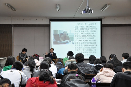 10月7日晚,2011年国家杰出青年基金获得者、生命学院副院长韦革宏教授在机电学院三层报告厅与同学们畅谈大学的学习生活。