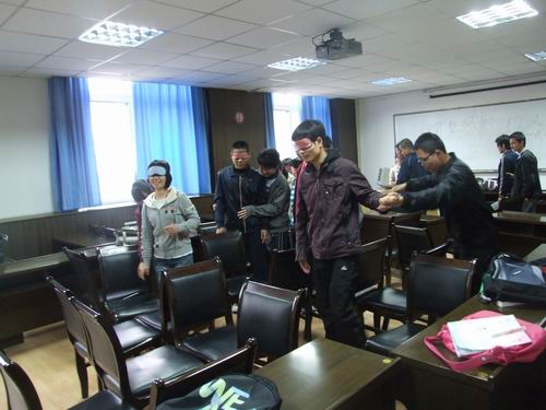 本次活动不拘泥于以往座谈会的形式,在金花老师的指导下,来自不同专业、年级的同学自行分组,相互介绍并与新朋友分享自己感兴趣的事情。在不知不觉的交流中,尴尬的气氛得以缓解,师生畅所欲言。为了让同学们更好的感受到生活中沟通、信任的重要性,金花老师与同学们一起做了“盲行”的游戏。同学们在帮助与被帮助的过程中感触颇深,各自分享了自己参与游戏的感受。