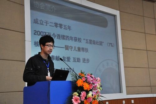 在上午的大会交流发言中,青年志愿者协会代表以“牵•守”为主题,介绍了协会在杨凌周边地区连续四年开展的留守儿童志愿帮扶项目。从留守儿童帮扶需求分析、帮扶模式探讨、搭建支持平台、项目执行、绩效反馈等方面进行了详细讲解。展示了在帮扶留守儿童活动中所形成的研究成果《以大学为依托的留守儿童关爱模式研究》。协会代表还结合与耐克(中国)有限公司及中国青少年发展基金会合作的案例,对高校社团项目化探索和志愿者激励机制建立的理解进行了阐述,得到了与会领导及其他高校社团代表的一致肯定。