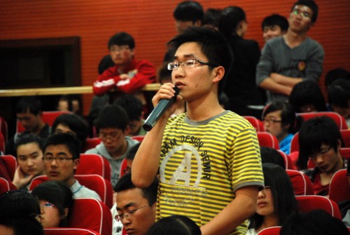互动环节,当有同学问及李靖教授在大学求学、考研及出国深造的动力是什么?他毫不掩饰的指出动力来自于一心想要改变自己及家庭的命运欲望。他说动力产生于个人环境的压力,贡献国家民族,得到社会给予的回报,二者并不矛盾。