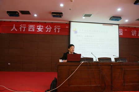 4月9日上午,由经管学院主办以“普及金融知识,成就美好人生”为主题的金融知识讲座在南校区国际交流中心208会议室顺利举行。人民银行西安分行的征信管理处骨干任刚举、人民银行西安分行支付结算处骨干张飞龙及人民银行西安分行反假货币专家王世玲应邀主讲,经管学院院党委副书记聂海出席并主持讲座,200多名金融学、经济学专业学生参加。