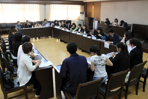 复赛采取无领导小组面试形式,考查参赛选手的分析理解及应变能力。参赛者按简历分为4个组别,每组别随机分成多个小组,每小组10人。首先每小组成员各自进行30秒自我介绍,然后根据所下发的“讨论试题”阐述自己的观点。观点阐述结束后,小组成员进行自由讨论,讨论结果由小组推荐一名同学进行总结陈述。面试过程中,参赛者机智敏锐,条理清晰,精彩的发言博得了阵阵掌声。四位面试官精彩的指导让参赛同学对企业招聘面试有了更深层次的了解。