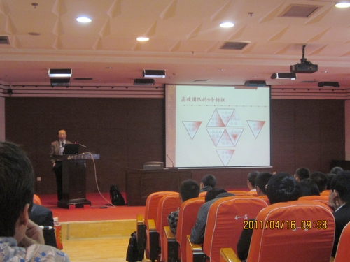 讲座一开始,霍学喜教授以和蔼可亲、平易近人的演讲风格拉近了与同学们的距离,从学生干部的实际工作出发,简明扼要的阐述了团队建设在学生工作中的重要性,更从主流价值观、社会惰性、等级影响等方面详细解析了团队意识在同学们日常学习和工作中的作用。他一再强调团队的优越性,要求与会的学生干部要积极培养团队意识,为服务学生的各项工作做好保障,并结合学校发展的实际及社会因素提出团队建设的几项原则。他表示确定适当的团队规模、保持团队的基本特征、树立清晰地共同目标及确立统一的行动计划是团队稳定发展的必然前提。