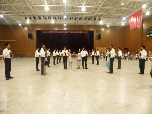 优雅的华尔兹舞步迅速吸引了在场所有人的目光。受此感染,大家纷纷步入舞池,将舞会迅速推向高潮。每个人都可以在场边品尝甘甜的葡萄美酒和各种美味佳肴。舞会期间,进行了同学们互动的游戏,主持人的幽默和参与者的出色表现使舞会现场欢声笑语不断。最后,全体参与可爱的兔子舞,使现场的气氛再次达到高潮。在掌声和呐喊声中, 2011届本科生毕业舞会圆满落幕。
