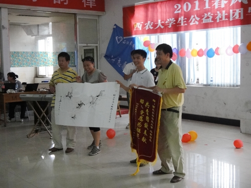演出前,莲湖区星星残疾人阳光家园向我校赠送锦旗及残疾人艺术作品。接下来,由残疾青少年带来的歌曲演唱,电子琴自弹唱,乐器独奏等节目将演出逐步推向高潮。演出结束后,参与此次联谊的社会公益人士及青年志愿者纷纷合影留念,演出获得了在场嘉宾及观众的一致好评。