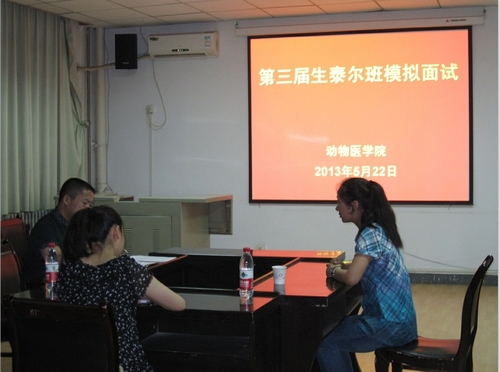 5月22日至23日,动物医学院在学院二层会议室举办2014届毕业生模拟面试。北京生泰尔生物科技集团副总裁、国家高级人力资源管理师、北京中关村人力资源经理协会常务理事姜殿国应邀担任面试官。模拟面试由学院党委副书记申让平主持。