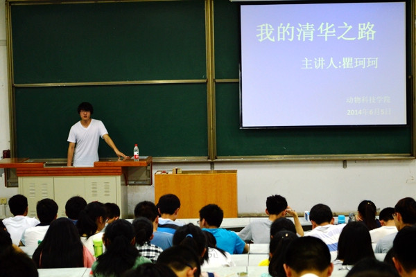 近日,由团委主办、动科学院团工委承办的大学生素质教育报告会之《我的清华之路》在北校区八号楼8T01教室举行。保送至清华大学的动物科学专业2010级瞿珂珂与同学们分享了自己的大学成长之路。