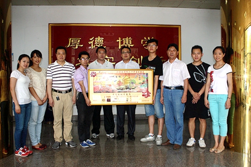 6月30日上午,食品学院2014届本科毕业生代表在学院行政楼大厅与学院和恩师告别,向学院赠送了毕业纪念品——万年历。学院院长岳田利、学院党委书记张振华代表学院接受了纪念品。