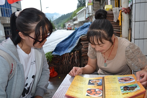 志愿者讲解特色农家乐菜谱