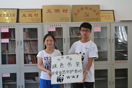 绿色书架,筑梦秦岭。为将环保进行到底,队员们在村中就地取材,利用废弃的木板和挂历,制作了绿色书架的标识牌。在旬阳坝村文化站,村委会领导与队员们进行了座谈,并举办了绿色书架启动仪式。