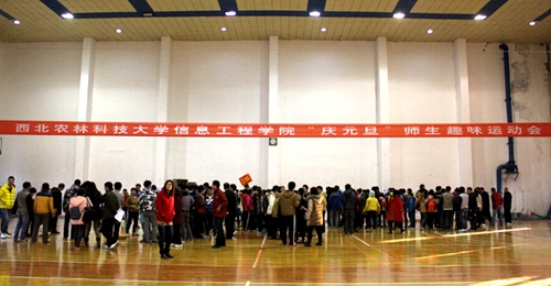 为践行美丽中国梦,团结凝聚师生力量,丰富校园文化生活,12月23日,信息学院在北校篮球馆举办了庆元旦师生趣味运动会。学院党政领导与师生代表共同参与了运动会。