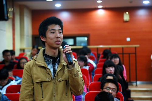 在报告会的提问环节,我校学子针对人生价值观等方面踊跃提问,老师从多角度,以切身经历分析,并提到各学子应该从自身改变做起,不要在意旁人的眼光,就可以做到最好的自己。对同学们今后地学习生活提出了珍贵的建议。
