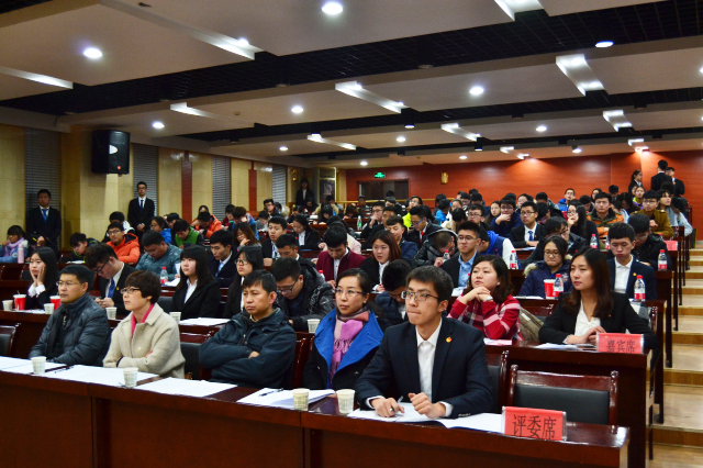 近日,由校团委主办、经管学院承办的第十五届金秋科技文化艺术节之“金点子”商业精英挑战赛在北绣山南报告厅举办。大赛特邀校党委宣传部副部长郭建东、学生处副处长苏蓉、经管学院市场营销教研室主任张晓慧、经管学院党委副书记温晓林、校团委陈龙老师出席并担任评委,200余名同学到场观看。