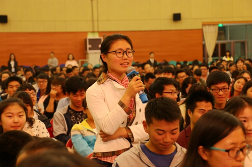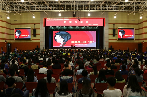 路彬彬和以往的主讲人完全不同,她没有用一张张精美的ppt来集中大家的注意力,而是出人意料的用一个问题拉开演讲的序幕。她问道,“同学们想听关于哪方面的话题,成长,就业,还是爱情?”会场大多数同学想听的话题是爱情。她从一个过来人的角度,用大家都能接受的方式将大家心中的疑惑娓娓道来。