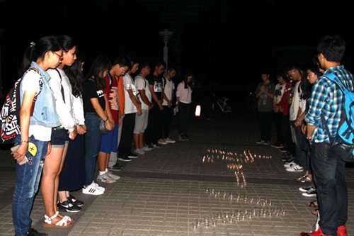 17日晚十点,活动准时开始。在主持人的带领下,活动在一段关于九一八事件的短片中正式拉开帷幕。同学们从视频影像中一同回顾了那段水深火热的悲痛史实。一幅幅震撼人心的画面,一个个惨绝人寰的场景,一声声声嘶力竭的呐喊,深深的震撼了在场每一位同学的心灵,那些画面和图文时刻警醒着同学们,即便此时身处于和平年代,没有战乱的恐慌,也应当时刻警惕着,回顾历史,缅怀先烈,让那些鲜血写出来的历史深深地铭刻进每一个人的内心。随后,同学们用蜡烛摆出“九•一八”的字样,在集体默哀三分钟。昏暗的烛光中,同学们表情悲哀沉重,或低头沉思,或闭眼默哀,均流露出了对在战争中逝去生命的沉痛哀悼,有的同学甚至满眼泪光。现场气氛一片庄严肃穆。此次活动为同学们带来了极大触动,学院组织部部长张禹表示:“在九·一八纪念日到来之际,居安思危,缅怀先烈,增强了我们的爱国热情。我们一定铭记历史,负重奋进,为了振兴中华而努力。”