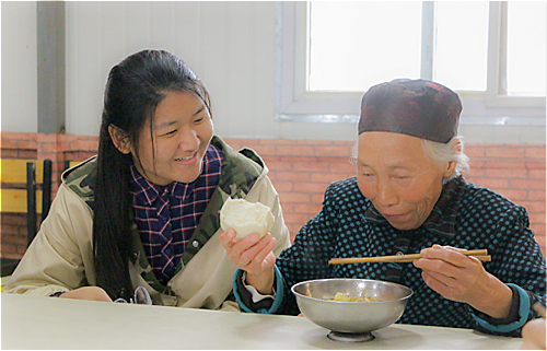 23日上午十点30分时,学生志愿者徒步来到周李村,途中下起了细雨。村主任热情地迎接了志愿者们,并烧开了一壶热水让大家驱寒。志愿者们分为两组,一组利用村里的广播台进行广播宣传,另一组由村主任带领来到幸福院开展工作。志愿者们和老人们促膝而谈,并深入了解他们的一日三餐,伙食搭配以及健康状况。志愿者们还专门采访了伙食长,向他了解食材的采购过程,食材的消毒处理,以及应对食品安全事件的举措等,志愿者们还根据自己掌握的专业知识提出了建议。在和老人的愉快交谈中,今天的活动也取得了圆满成功。最后,志愿者们打伞将老人送回家中。
