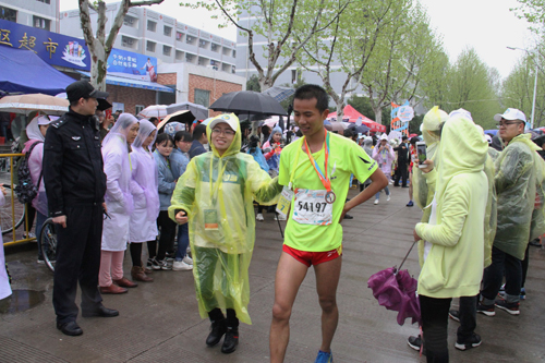 比赛当日,空中飘洒细雨却不能浇灭参赛者与观众的热情,人文学子更是积极参与。参赛运动员换上参赛服,登上赛道,在雨中点燃激情,尽力奔跑。人文学院完成半马赛程的王维林同学说道:“跑马拉松的感觉很棒,这次比赛的组织举办给人的感觉也很棒,希望明年能够跑完全马。”