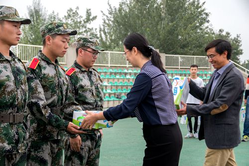 最后,李海华书记与裴志超副书记一同为受训学生亲切送上慰问品,祝愿大家圆满完成军训任务,成长为优秀的创新人。同学们纷纷表示,在军训期间,一定会按照学校军训的统一部署和安排,严格要求,刻苦训练,争取优秀的军训成果,圆满完成军训任务。