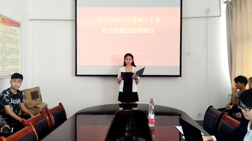 9月17日,林学院2017年暑期三下乡社会实践总结答辩会在南校区林学院行政楼成功举办。本次活动共38支队参与答辩,林学院团工委书记马熙、学生会主席雷雨、团工委副书记朱丽、学生会副主席孙雅薇、学生会副主席陈爽参加本次活动并担任答辩评委。