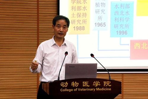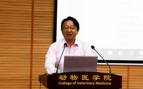 基础兽医系主任陈树林教授、预防兽医系主任王晶钰教授、临床兽医系副主任林鹏飞副教授依次介绍专业情况,展示科研团队师资力量及科研成果。