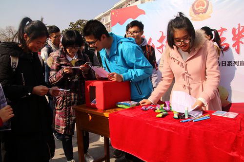 活动开始后,工作人员拿着宣传单热情的走向来往同学,向他们介绍相关宪法知识并讲述了宪法的重要性。同时,邀请同学们到现场签名和答题,使其参与到此次活动之中。