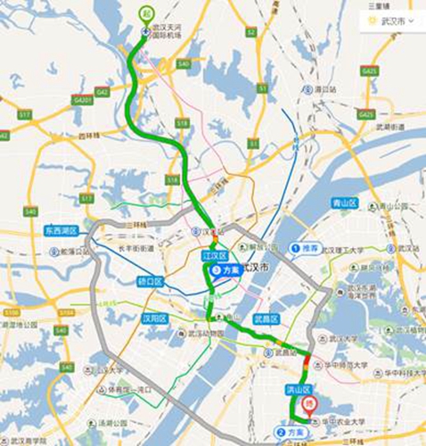 2. 汉口火车站到会议地点打车路线:约1 h10 min,26.3 km,75元。