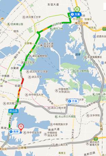 4. 武昌火车站到会议地点打车路线:约35 min,11 km,30元。