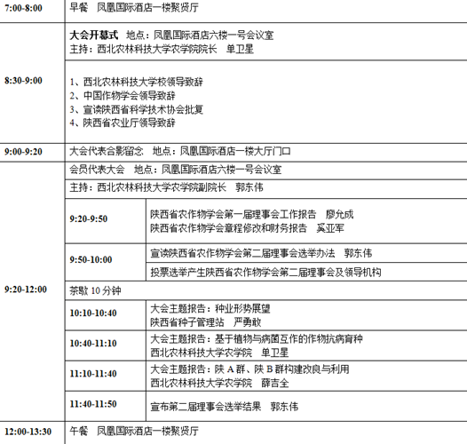 18:30-20:30 晚餐:杨凌示范区凤凰国际酒店一楼聚贤厅